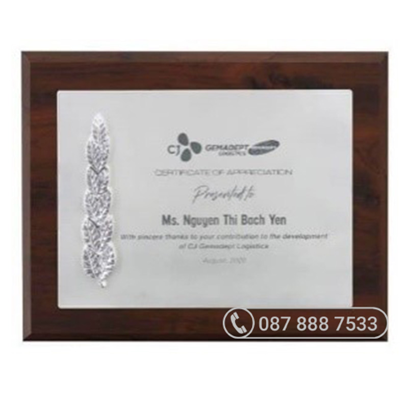 - Kích thước: 200x250mm, thích hợp để trưng bày trên bàn làm việc, phòng họp, kệ tủ trưng bày.