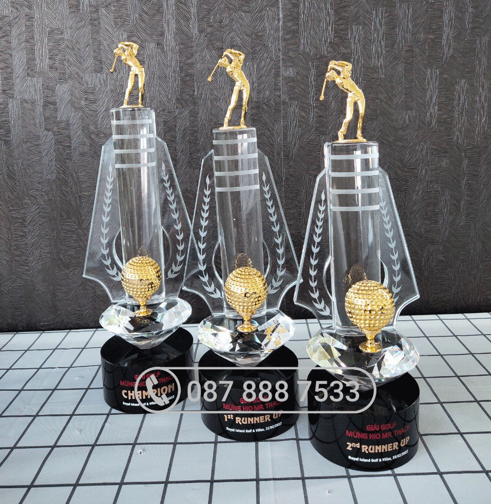 – Cúp Golf pha lê cao cấp có 3 size dành vinh danh người đạt giải Golf