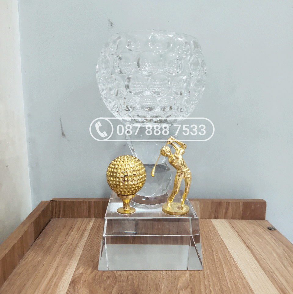 – Màu sắc: thân pha lê trắng, gắn hình icon golf vàng + bóng golf trắng
