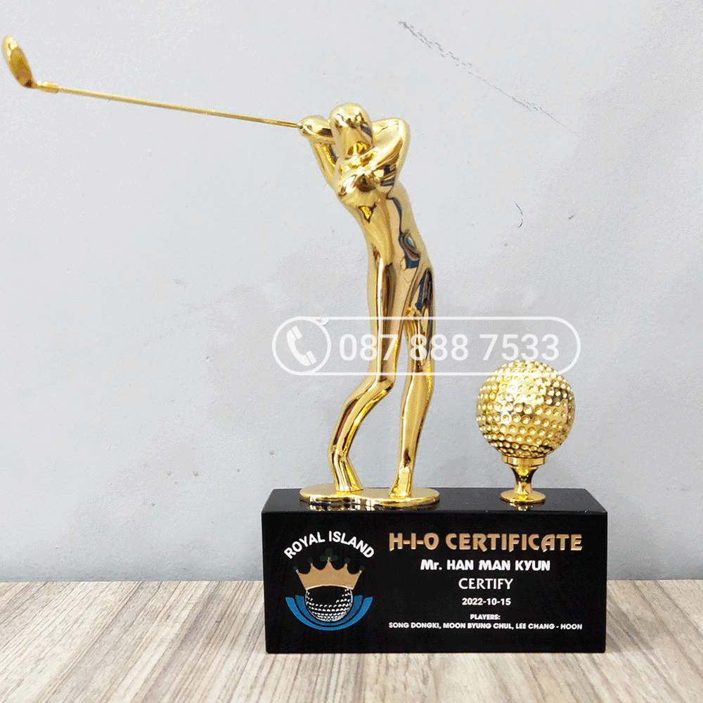 – Cúp Golf pha lê làm bằng chất liệu Pha lê chuyên dùng cho giải kỹ thuật các giải Golf– Kiểu dáng: gắn hình golfer và bóng golf màu vàng– Kích thước: cao 22cm.– Thiết kế và khắc nội dung theo yêu cầu của khách hàng