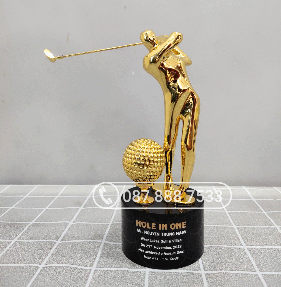 – Cúp Golf làm bằng chất liệu Pha lê chuyên dùng tặng cho các giải Golf, giải Hole In One– Kiểu dáng: gắn hình golfer và bóng golf màu vàng, đế đen– Kích thước: cao 22cm.– Thiết kế và khắc nội dung theo yêu cầu của khách hàng.