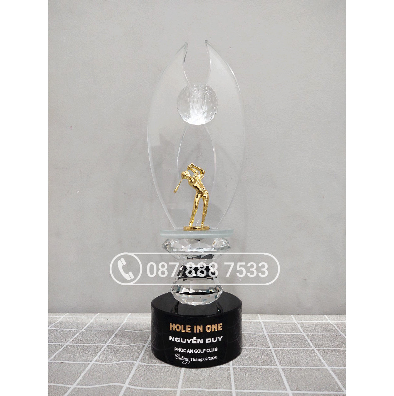– Cúp Golf làm bằng chất liệu Pha lê cao cấp hình chiếc lá chuyên dành trao tặng trong các giải Golf