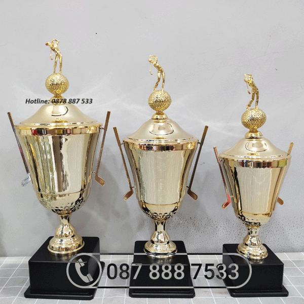 – Cúp kim loại cao cấp màu vàng, gắn đỉnh golf theo yêu cầu.