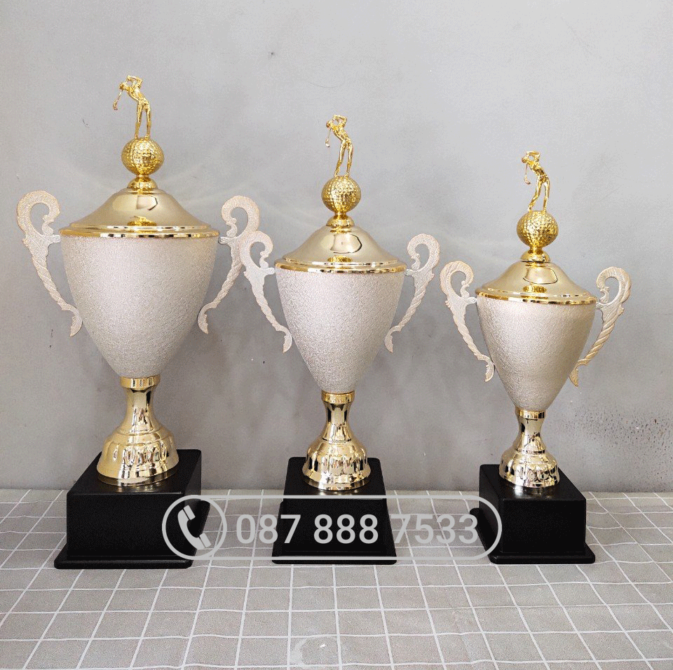 – Cúp kim loại cao cấp màu vàng, thân cúp mạ sần