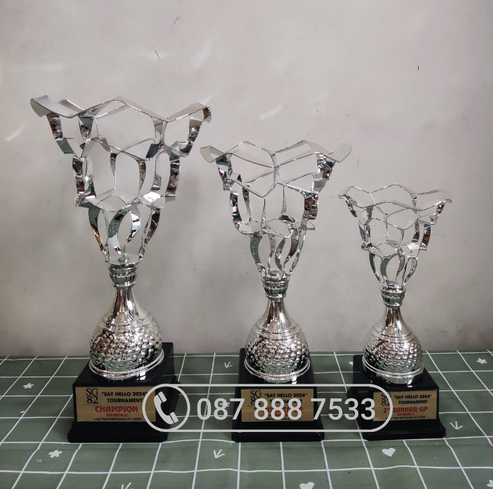 – Cúp kim loại cao cấp màu bạc cắt laser