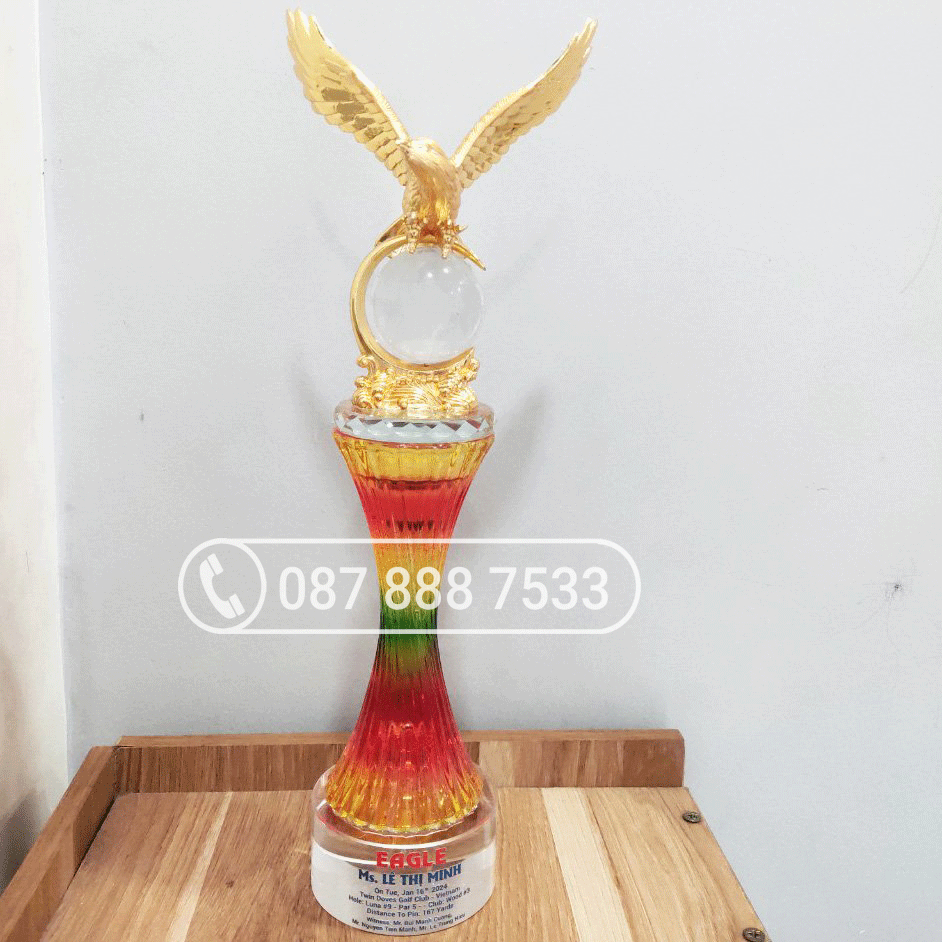 – Cúp Golf pha lê đỏ cao cấp đầu hình đại bàng dùng trao giải Eagle trong môn thể thao golf– Chất liệu: Pha lê cao cấp– Màu sắc: pha lê đỏ– Kích thước: cao 38cm– Thiết kế và khắc nội dung theo yêu cầu của khách hàng