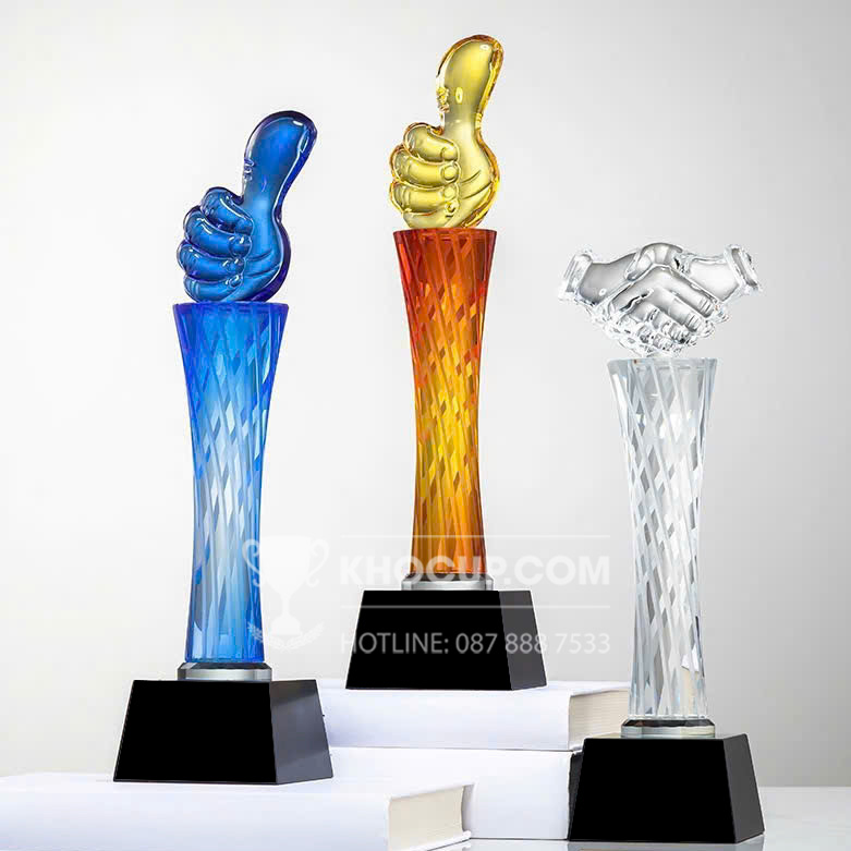 – Cúp pha lê, number one– Chất liệu: Pha lê – Màu sắc: thân màu đỏ,xanh dương, bạc