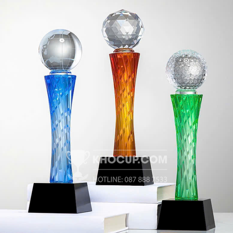 – Cúp pha lê– Chất liệu: Pha lê– Màu sắc: thân màu đỏ,xanh lá,xanh dương