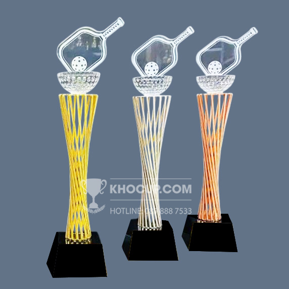 – Cúp Pickleball thân kim loại, đỉnh pickleball pha lê– Chất liệu: Pha lê – Màu sắc: vàng,bạc,đồng
