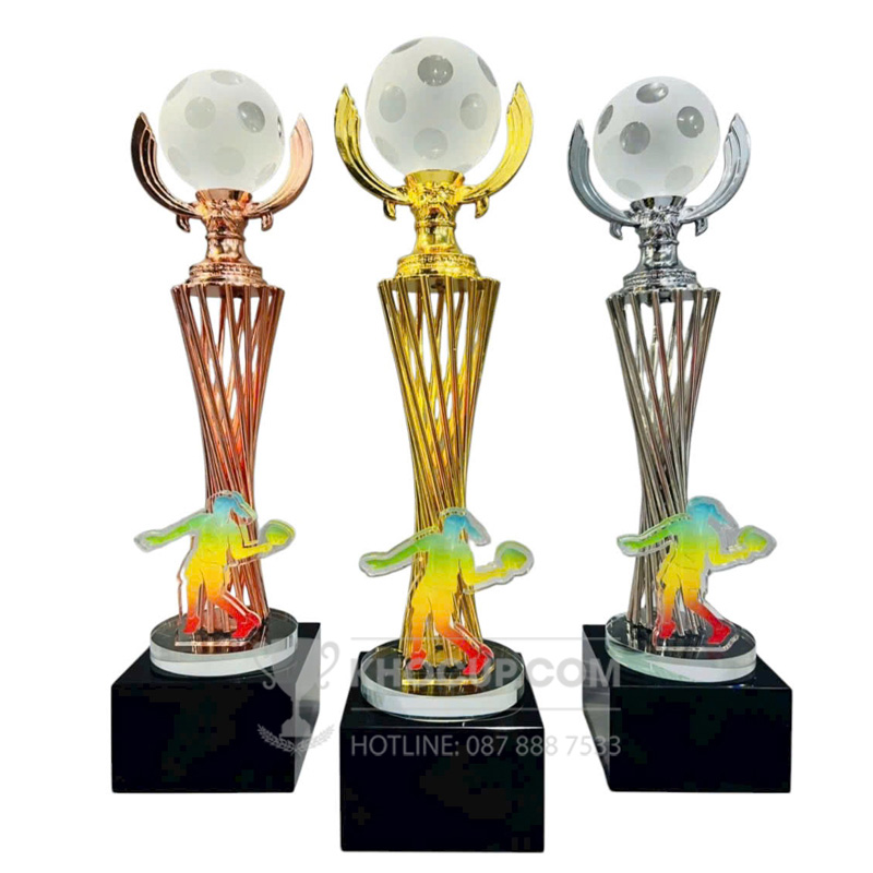 – Cúp Pickleball thân kim loại – Chất liệu: Pha lê – Màu sắc: vàng,bạc,đồng