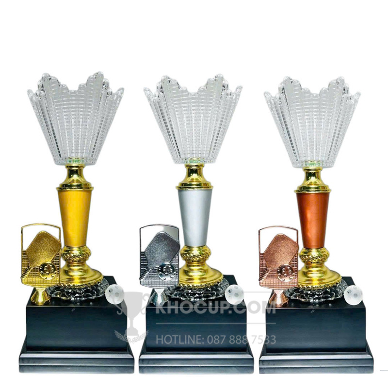 – Cúp Pickleball thân kim loại – Chất liệu: Pha lê – Màu sắc: thân kim loại vàng,bạc,đồng