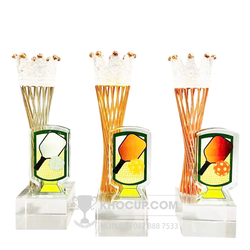 – Cúp Pickleball vương miệng thân kim loại – Chất liệu: Pha lê – Màu sắc: vàng,bạc,đồng