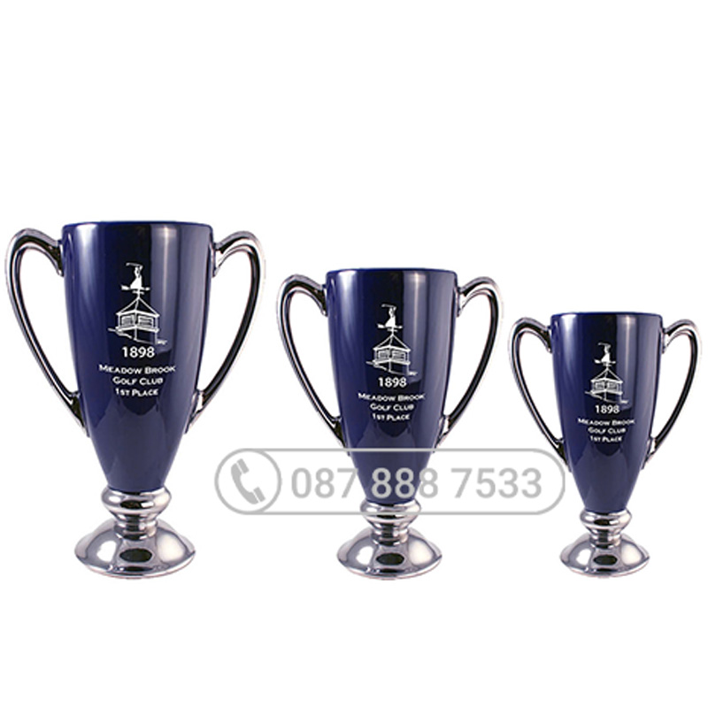 - Thiết kế tinh tế: Cúp sứ bình USA cao cấp với màu xanh dương nổi bật, kết hợp tay cầm thanh lịch tạo điểm nhấn đặc biệt. Kiểu dáng trang nhã và hiện đại, phù hợp với các sự kiện cao cấp và giải thưởng danh giá.