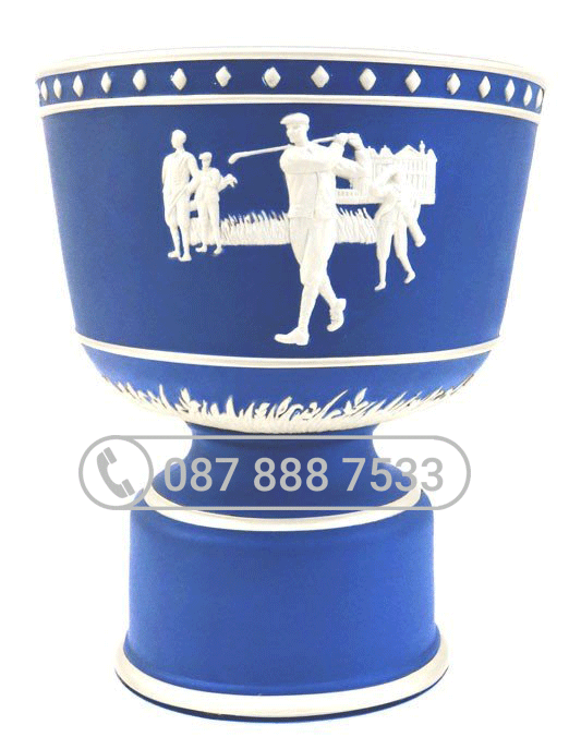 - Cúp Sứ USA cao cấp màu xanh, hoa văn in hình golfer nổi sắc xảo