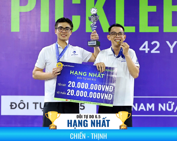Ở nội dung đôi nam nữ 5.0, danh hiệu vô địch thuộc về Lê Châu/Phúc Cần Thơ và ở nội dung trình cao nhất của giải pickleball Phiten Cup 2025, đôi Phạm Đình Chiến/Nguyễn Hiền Thịnh xuất sắc đánh bại hàng loạt đối thủ mạnh để bước lên bục cao nhất, nhận phần thưởng 20 triệu đồng tiền mặt cùng 20 triệu đồng quà tặng từ ban tổ chức.